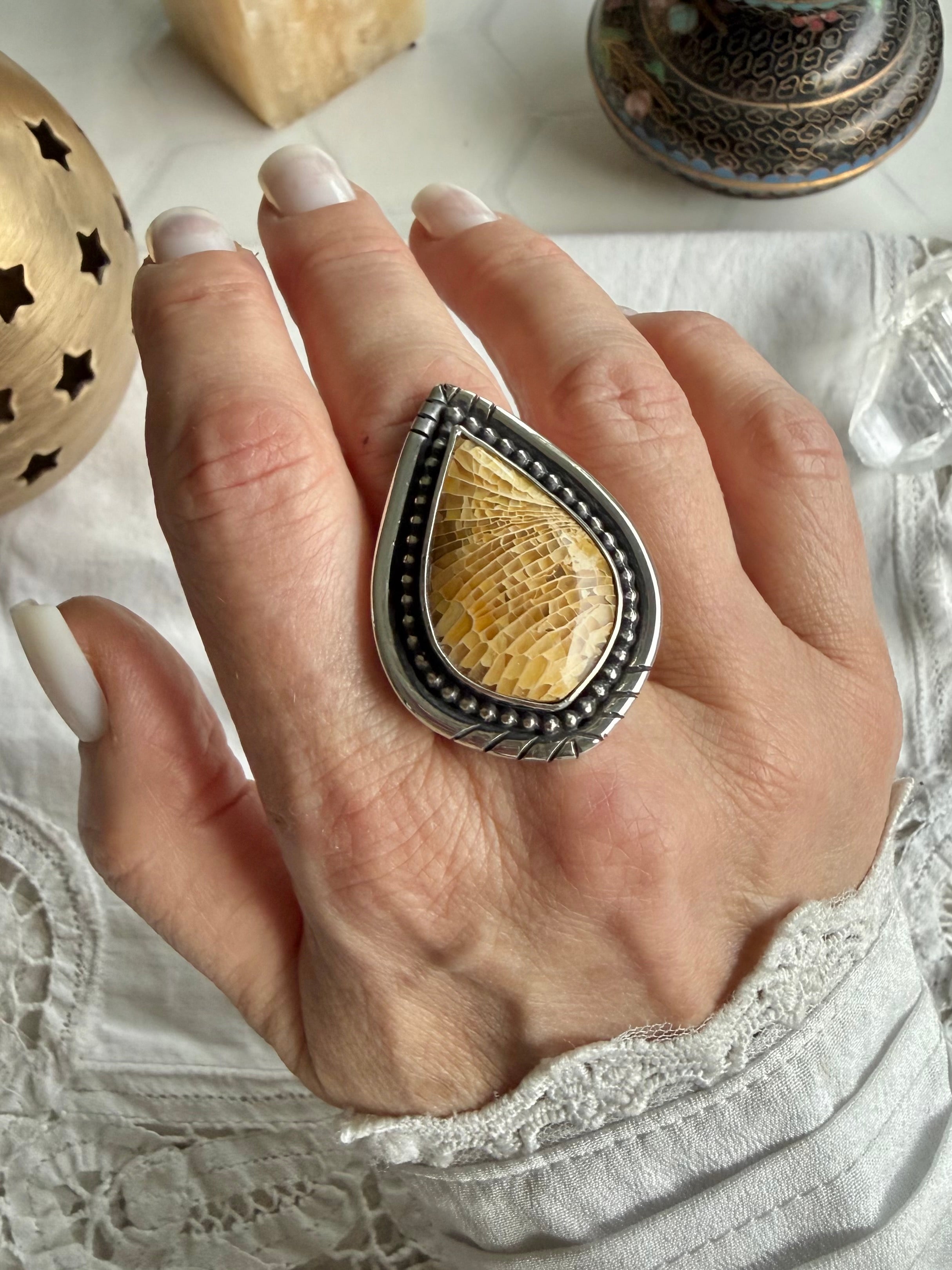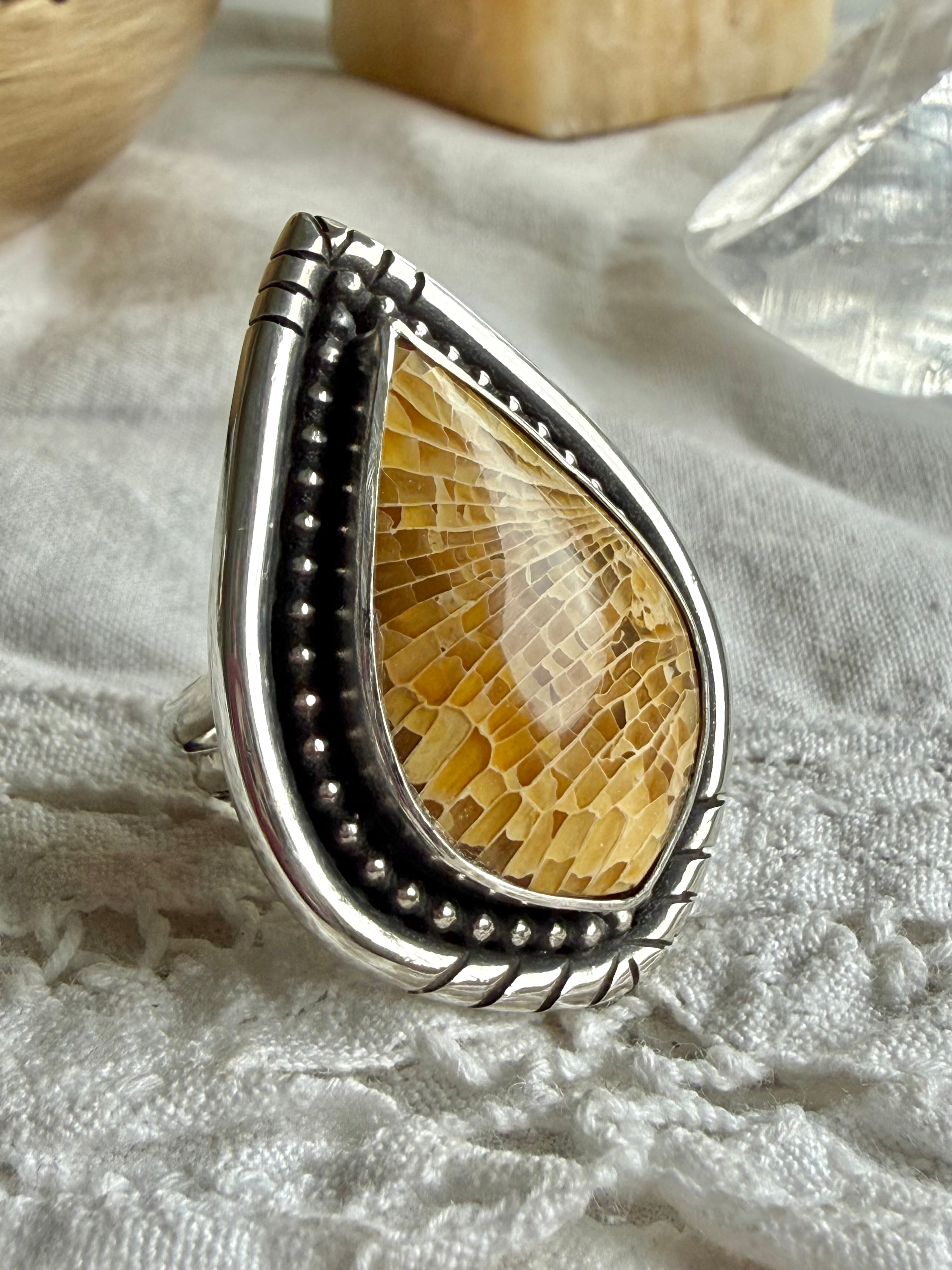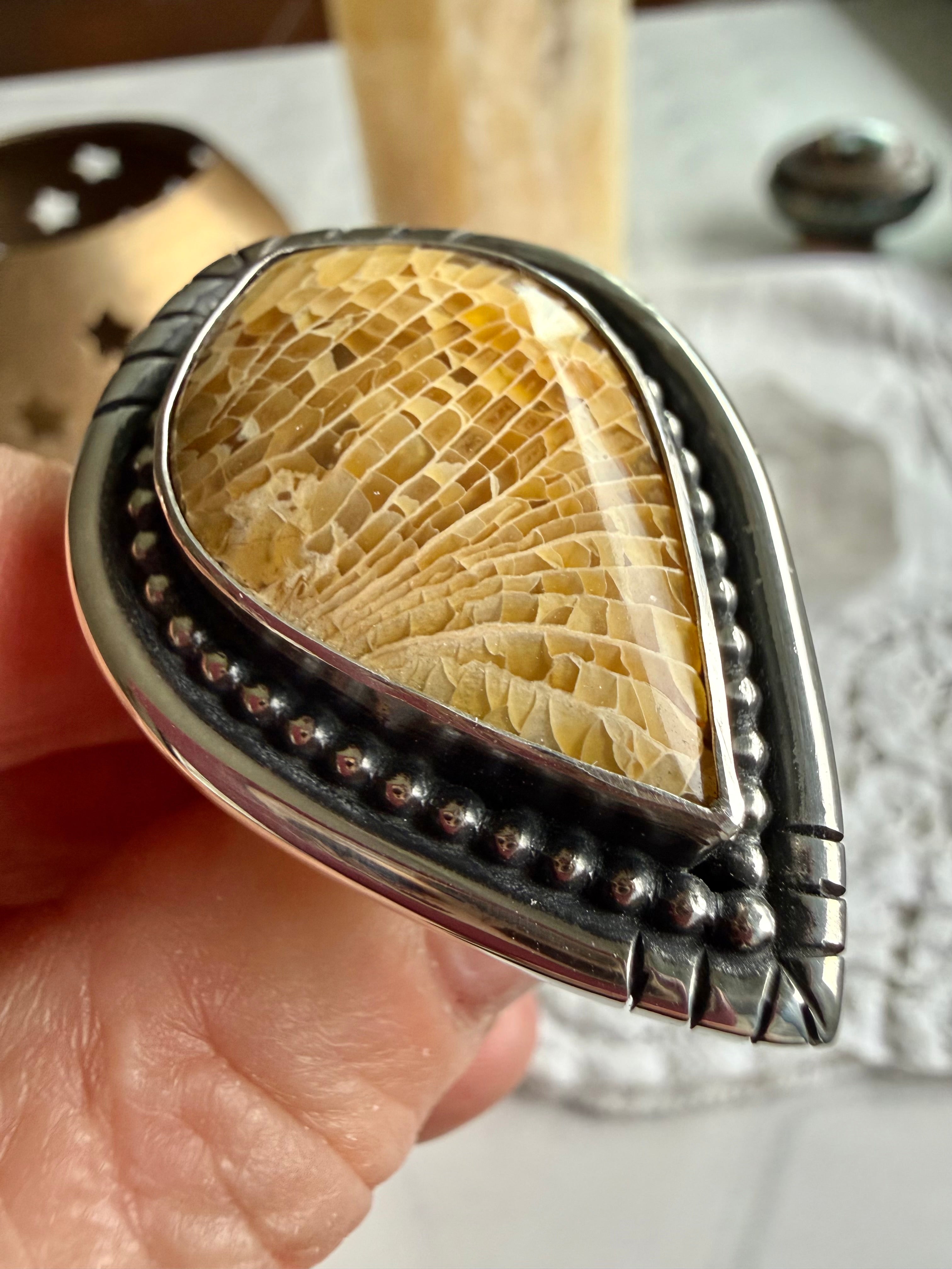Fossilized Coral Ring. 9 Wide Band