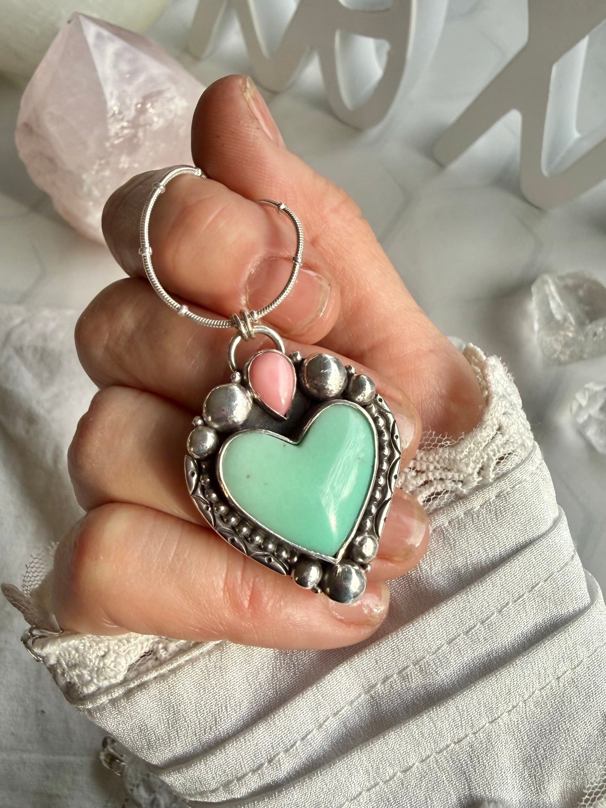 Stones: Chrysoprase and Pink Shell