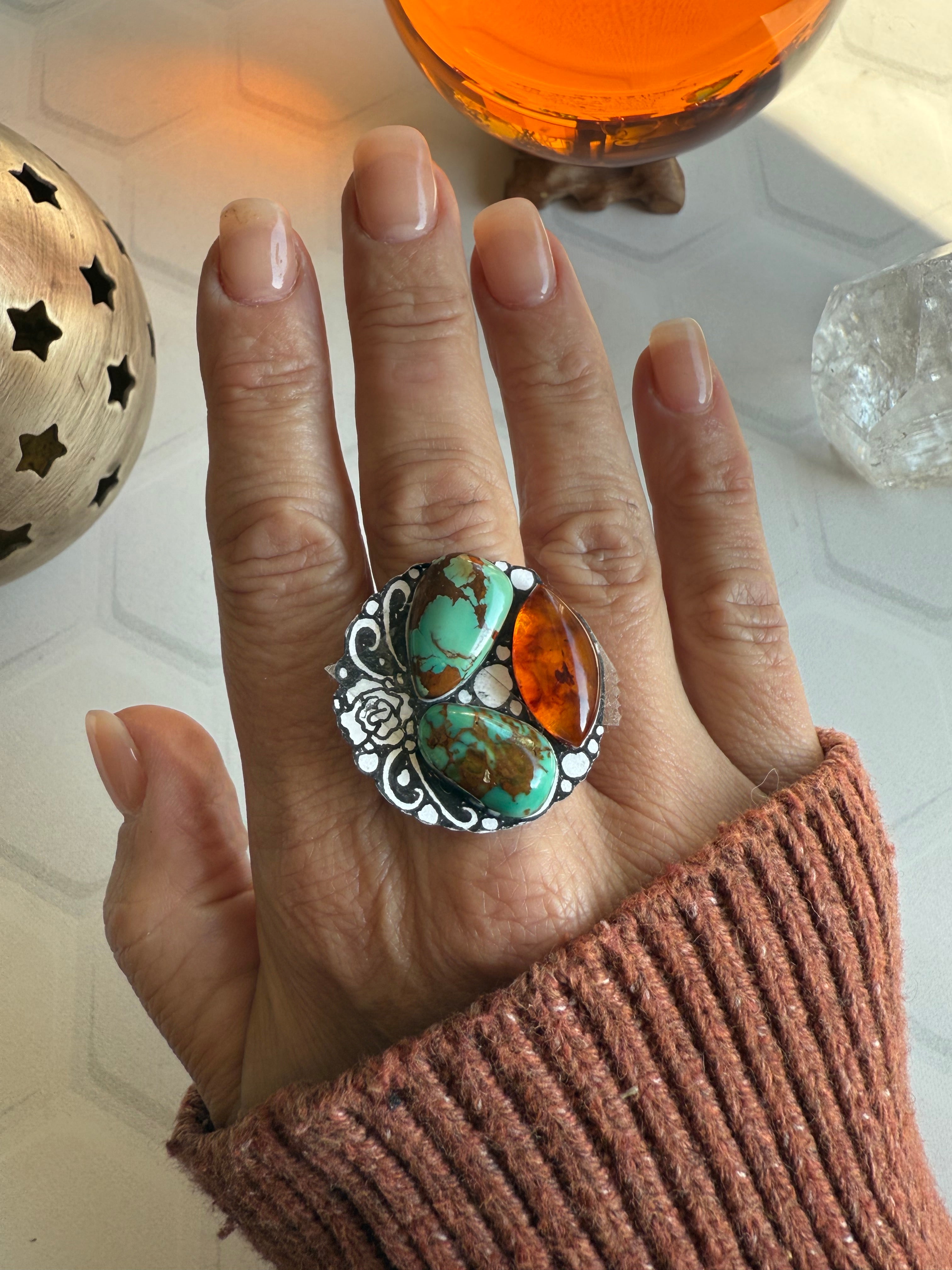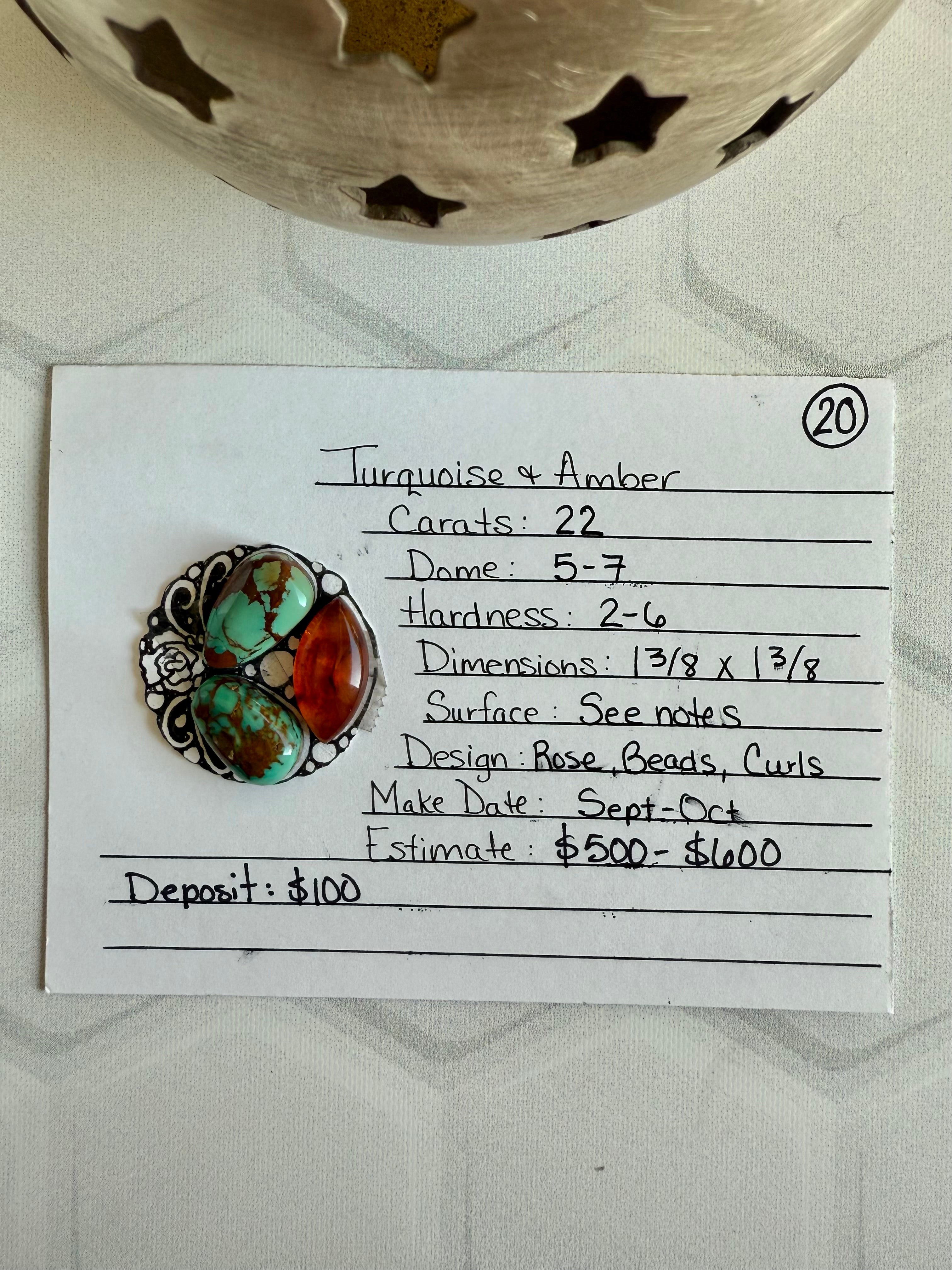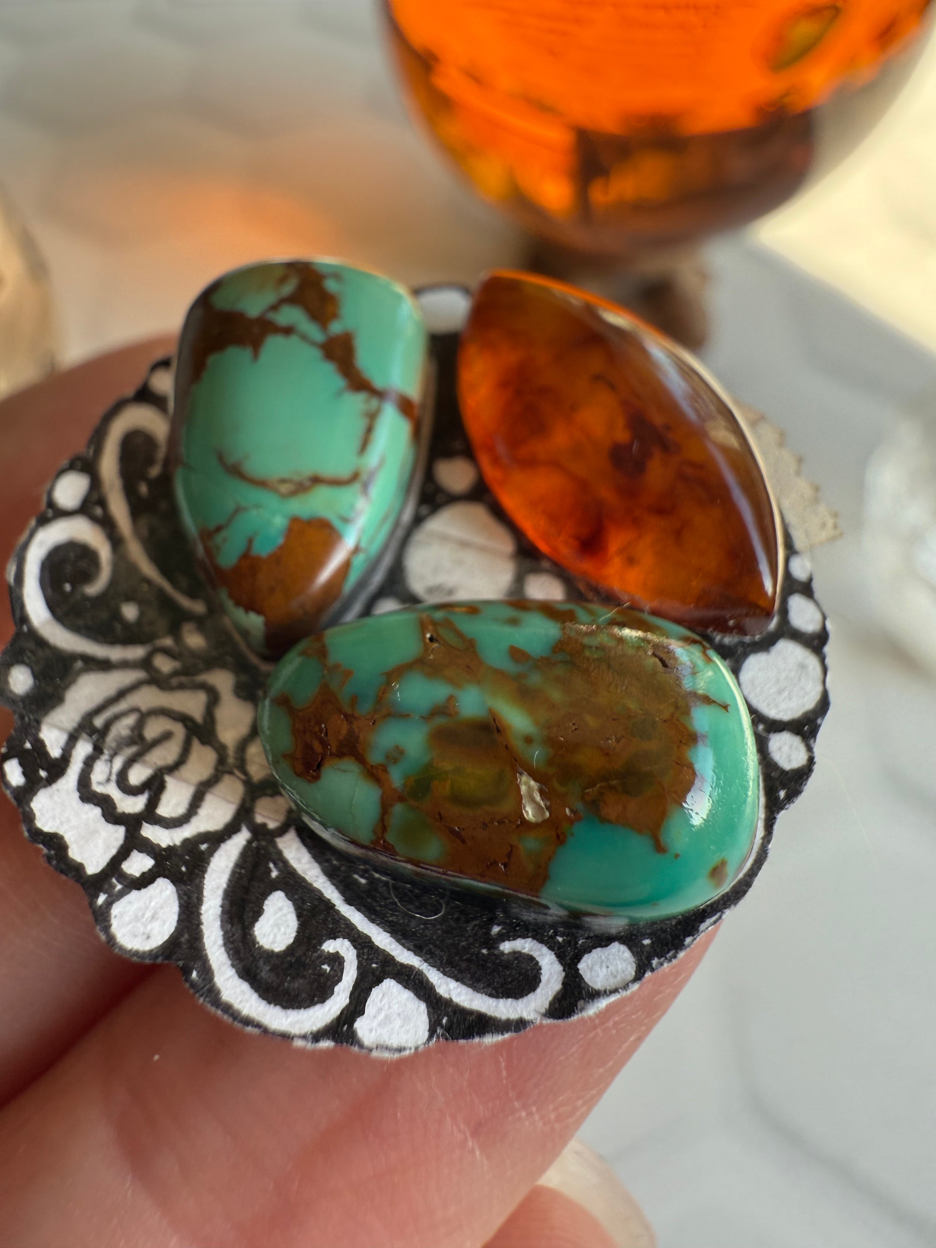 Stones: Pilot Mountain & Kings Manassa Turquoise with Baltic Amber