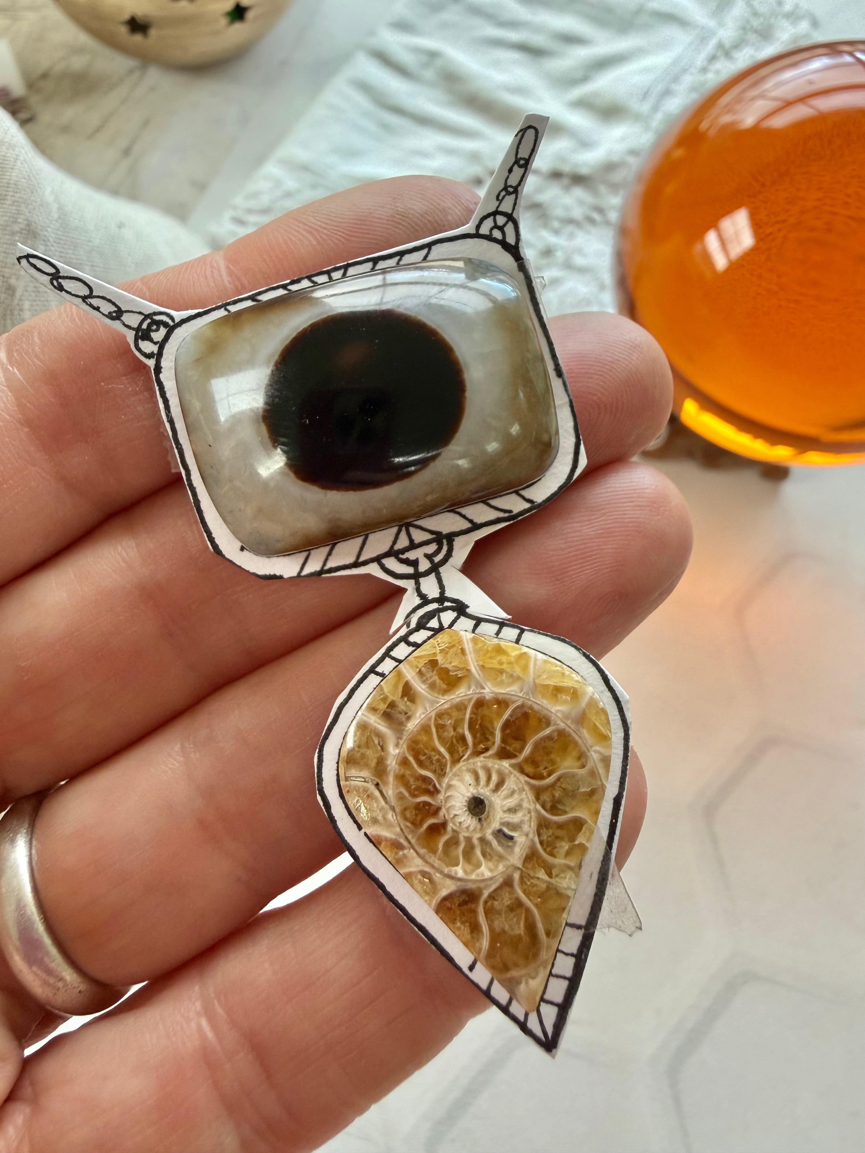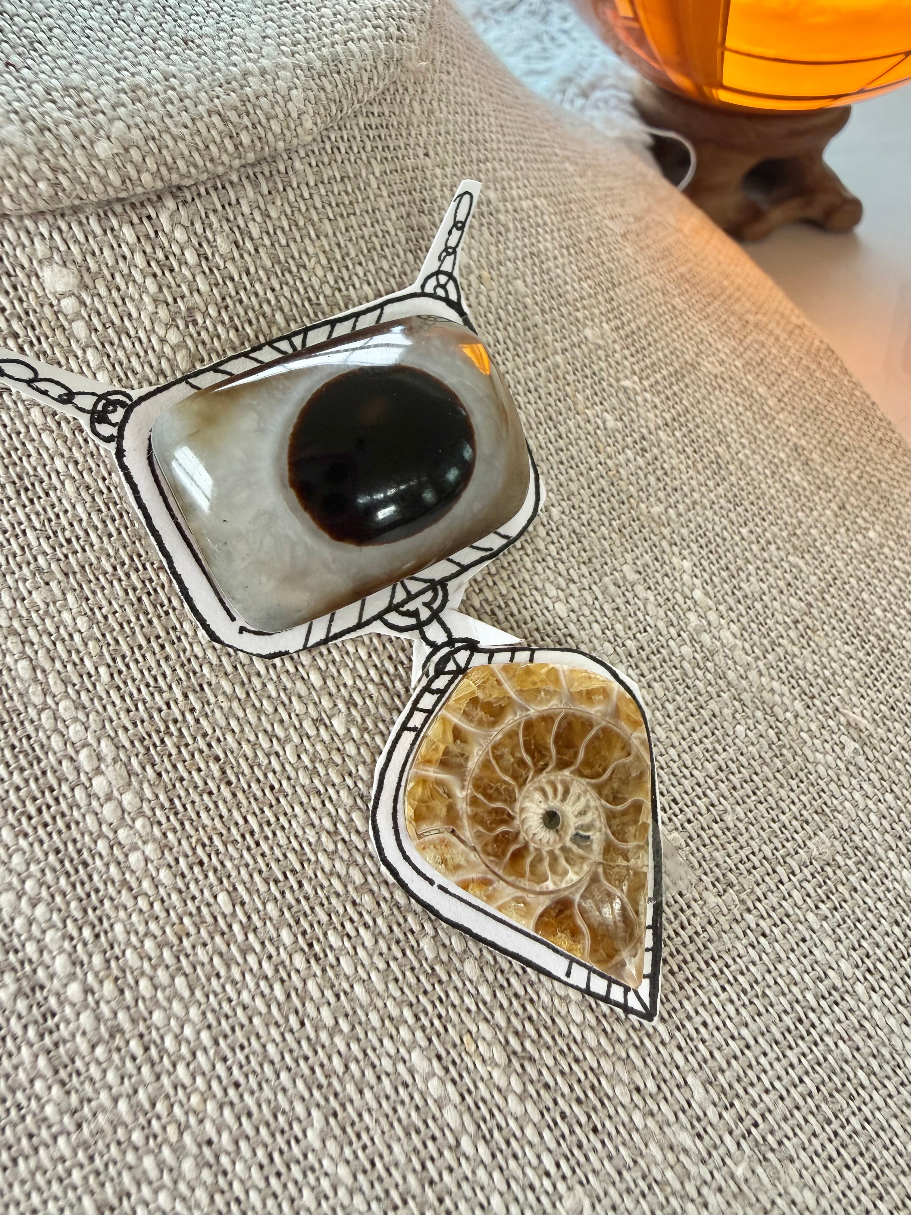 Stone Dome: Eye Agate 12mm & Ammonite 6 mm