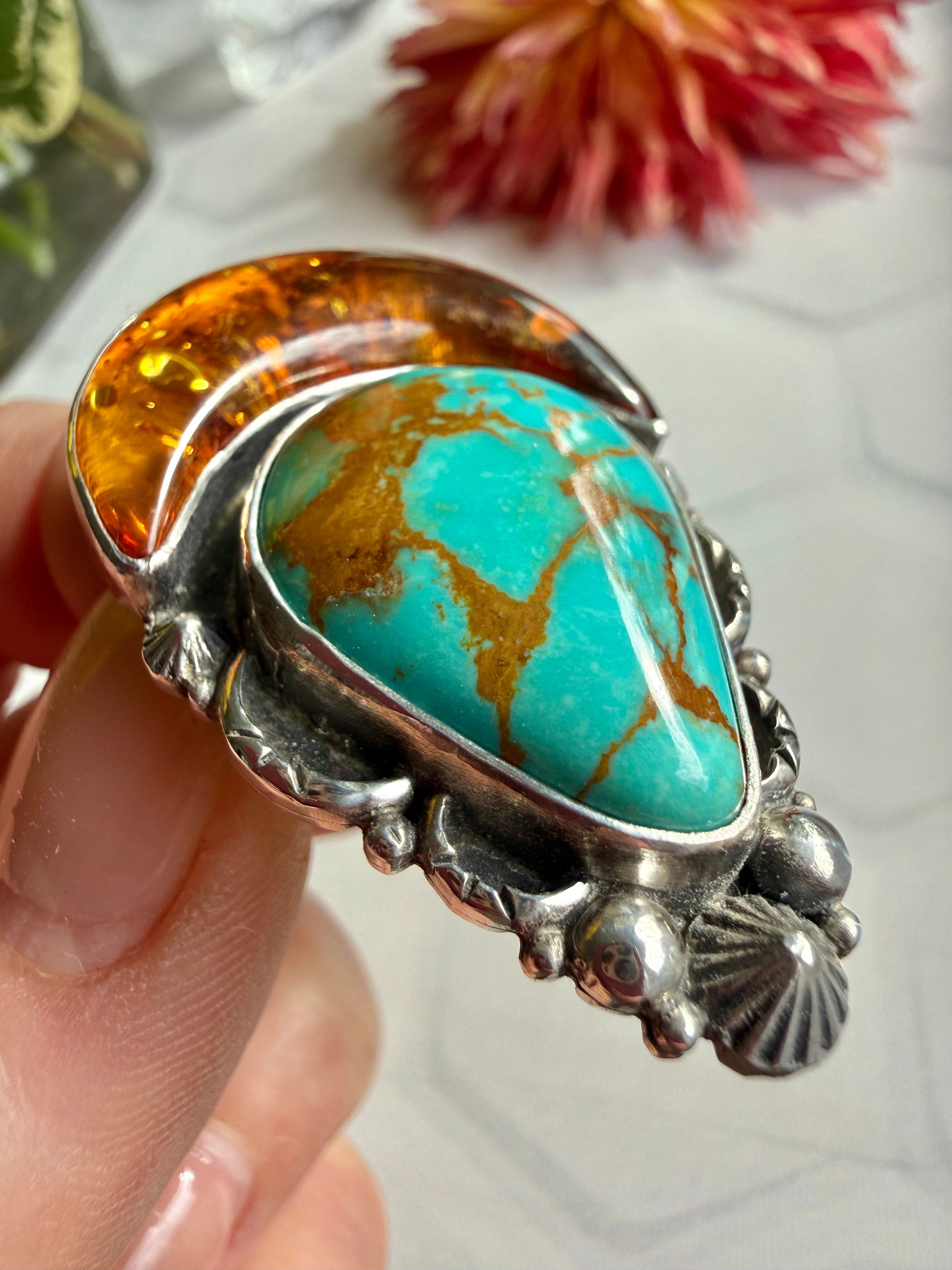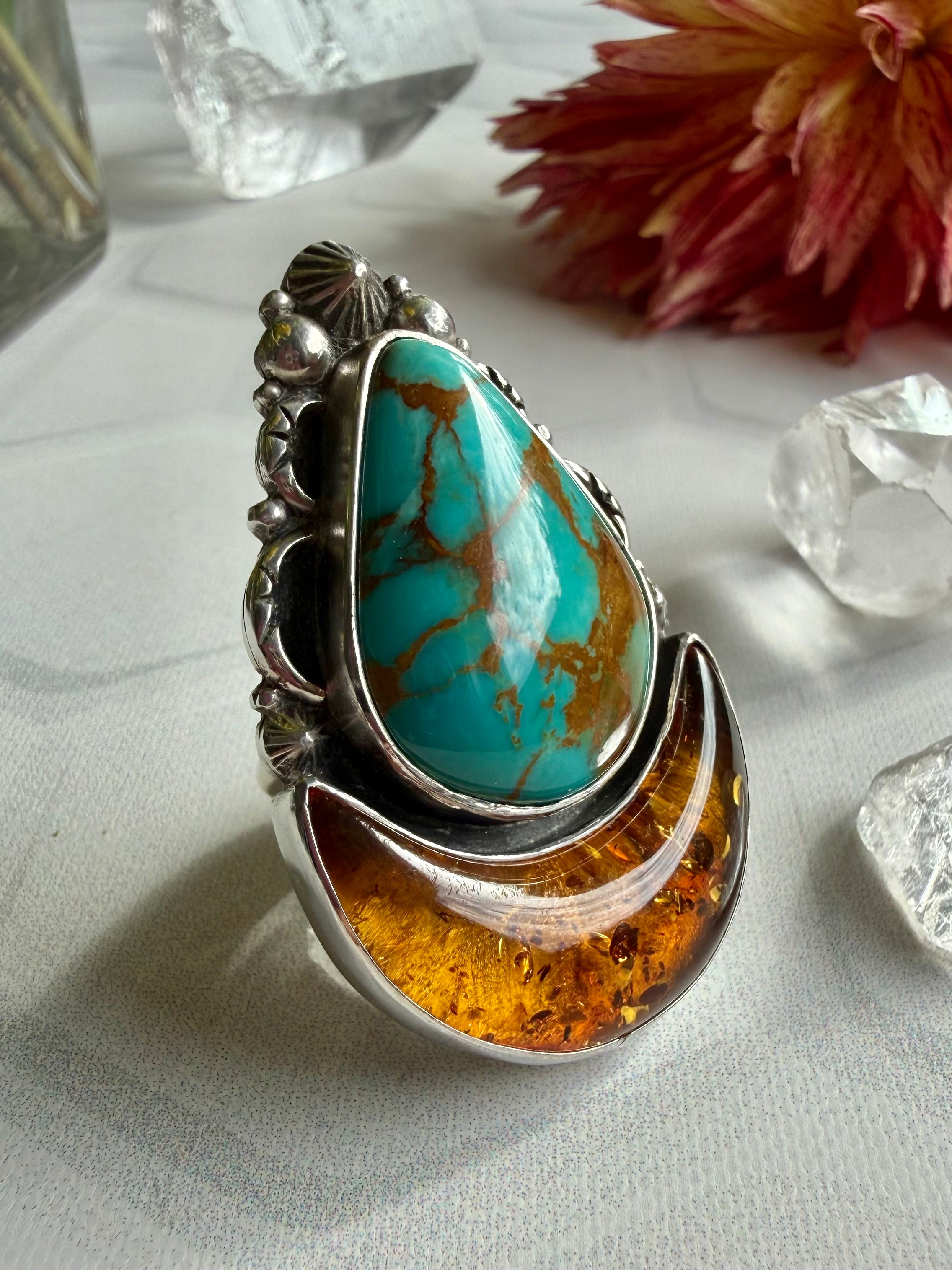Stones: Kings Manassa Turquoise & Baltic Amber Moon
