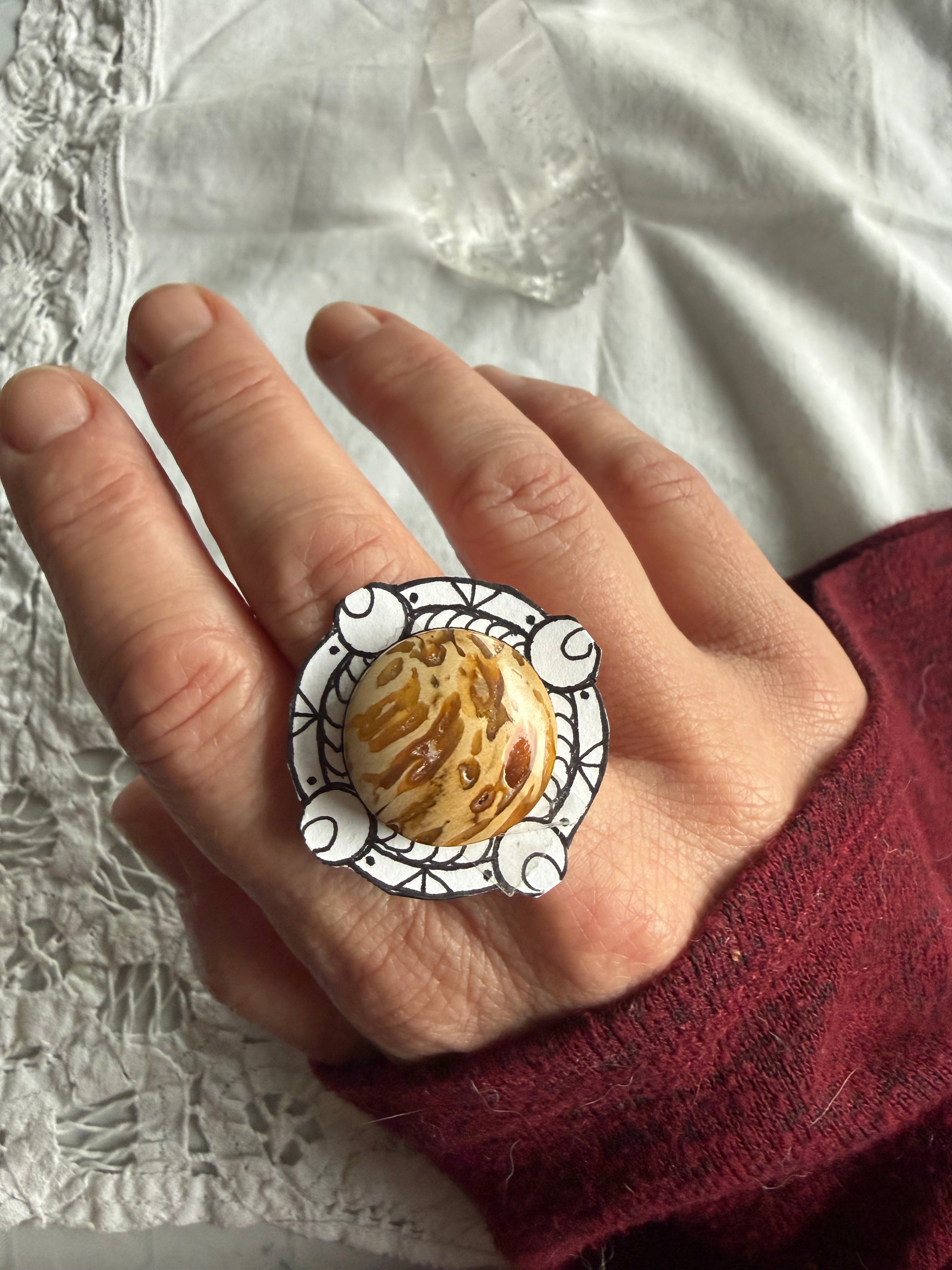 Design: Crescent moons, hand-twisted rope, & chunky marked borders