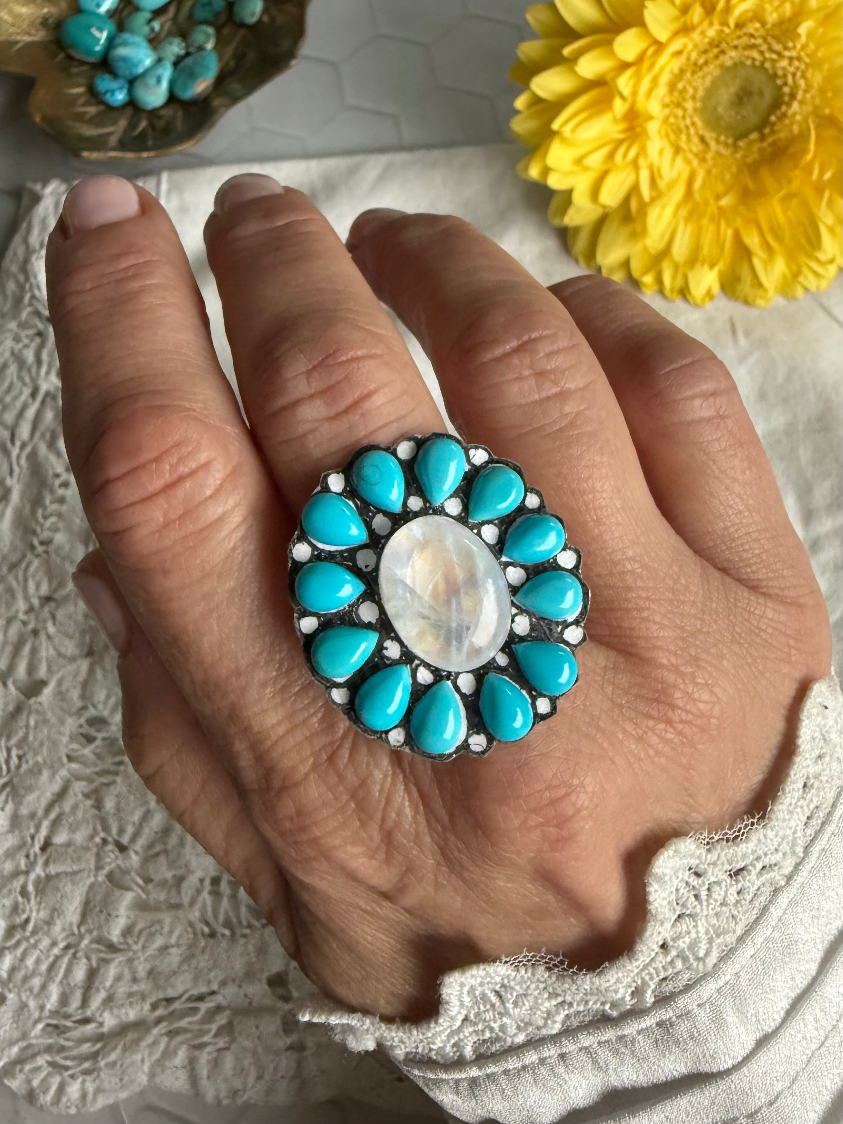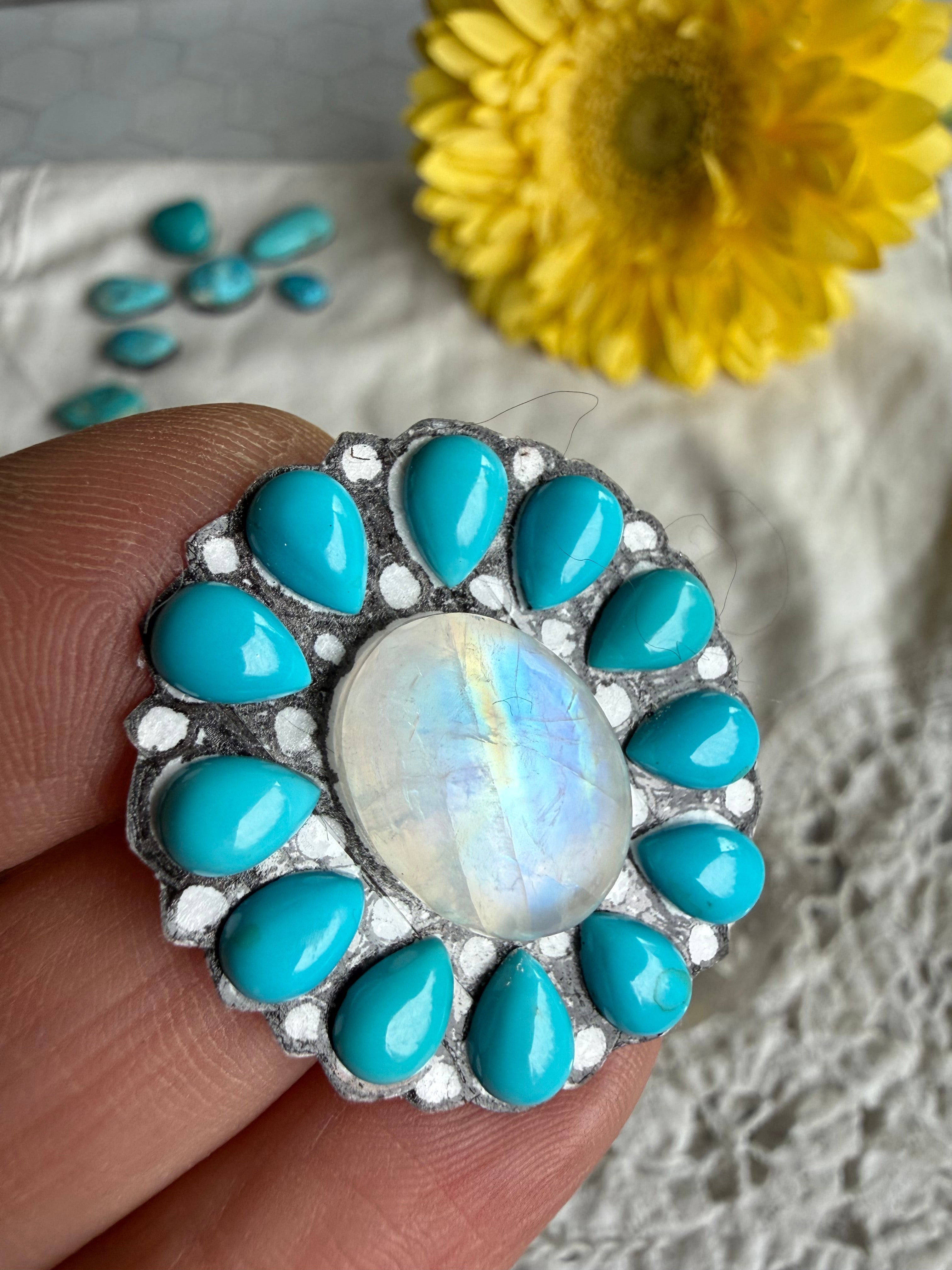 Stones: Top Shelf Rainbow Moonstone and Sleeping Beauty Turquoise
