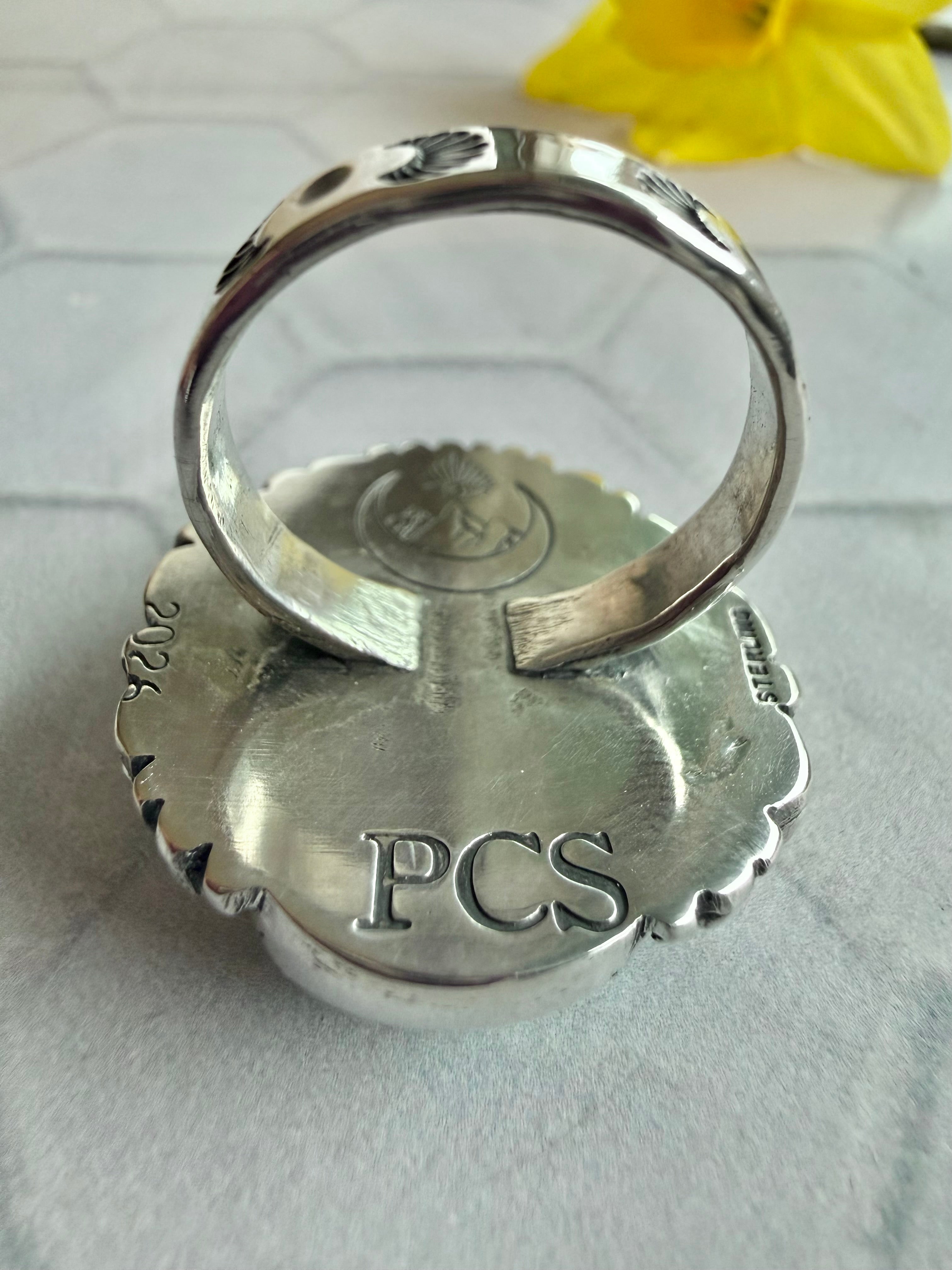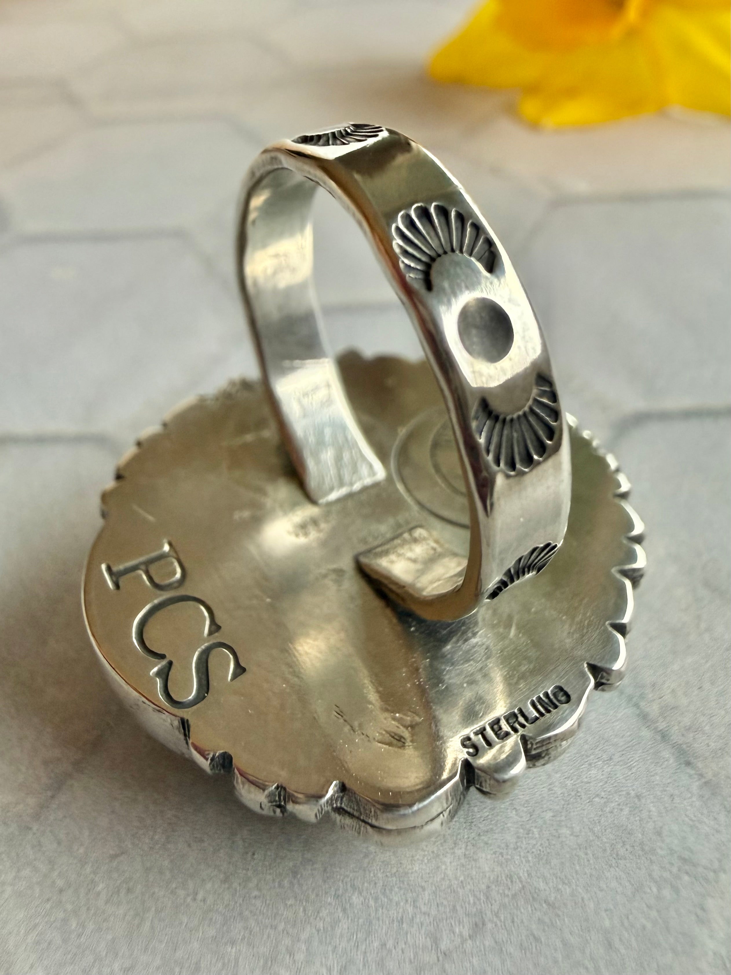 Ring Band Type: thick, hand cut, flat band with southwest-style stamps