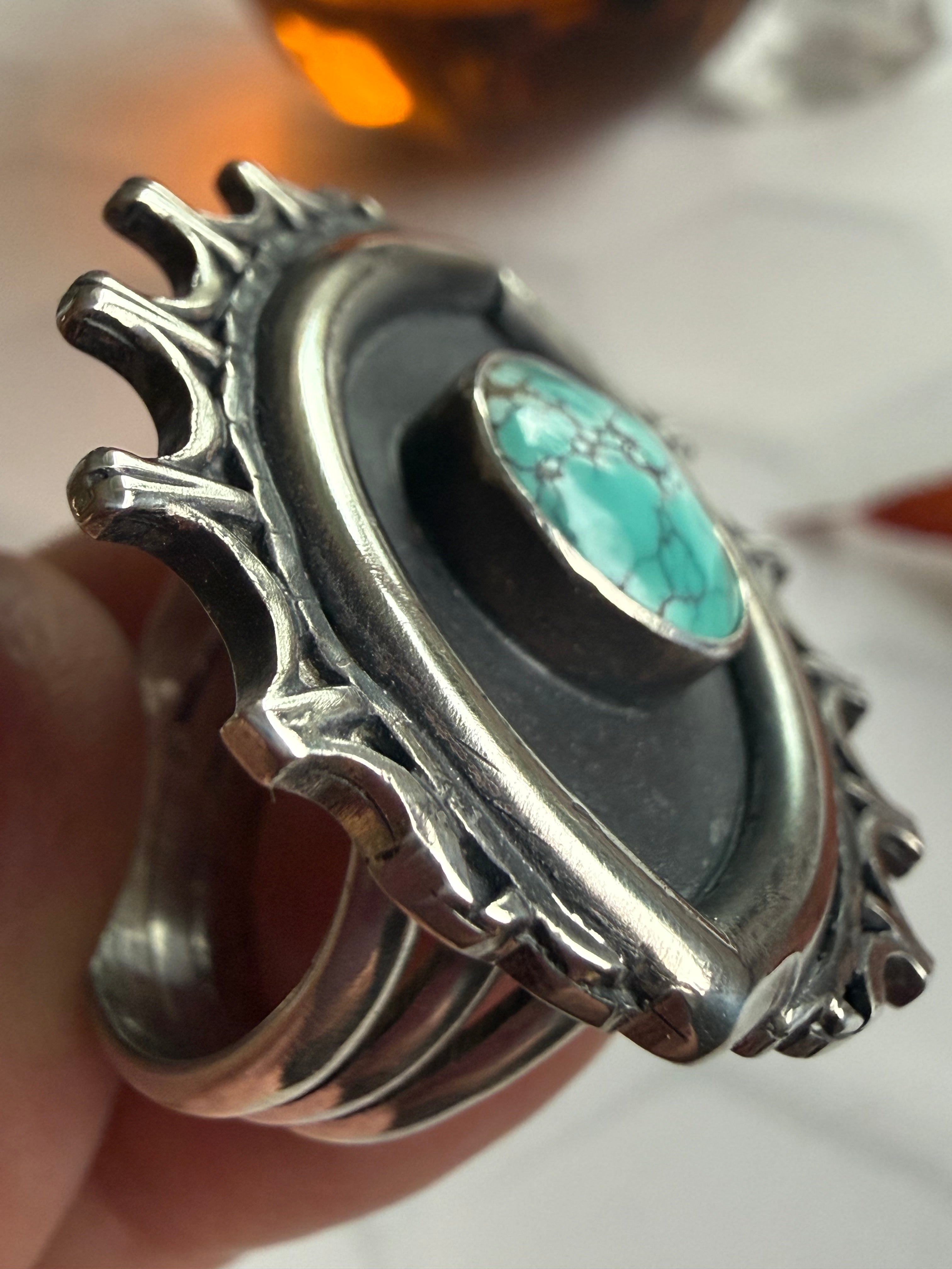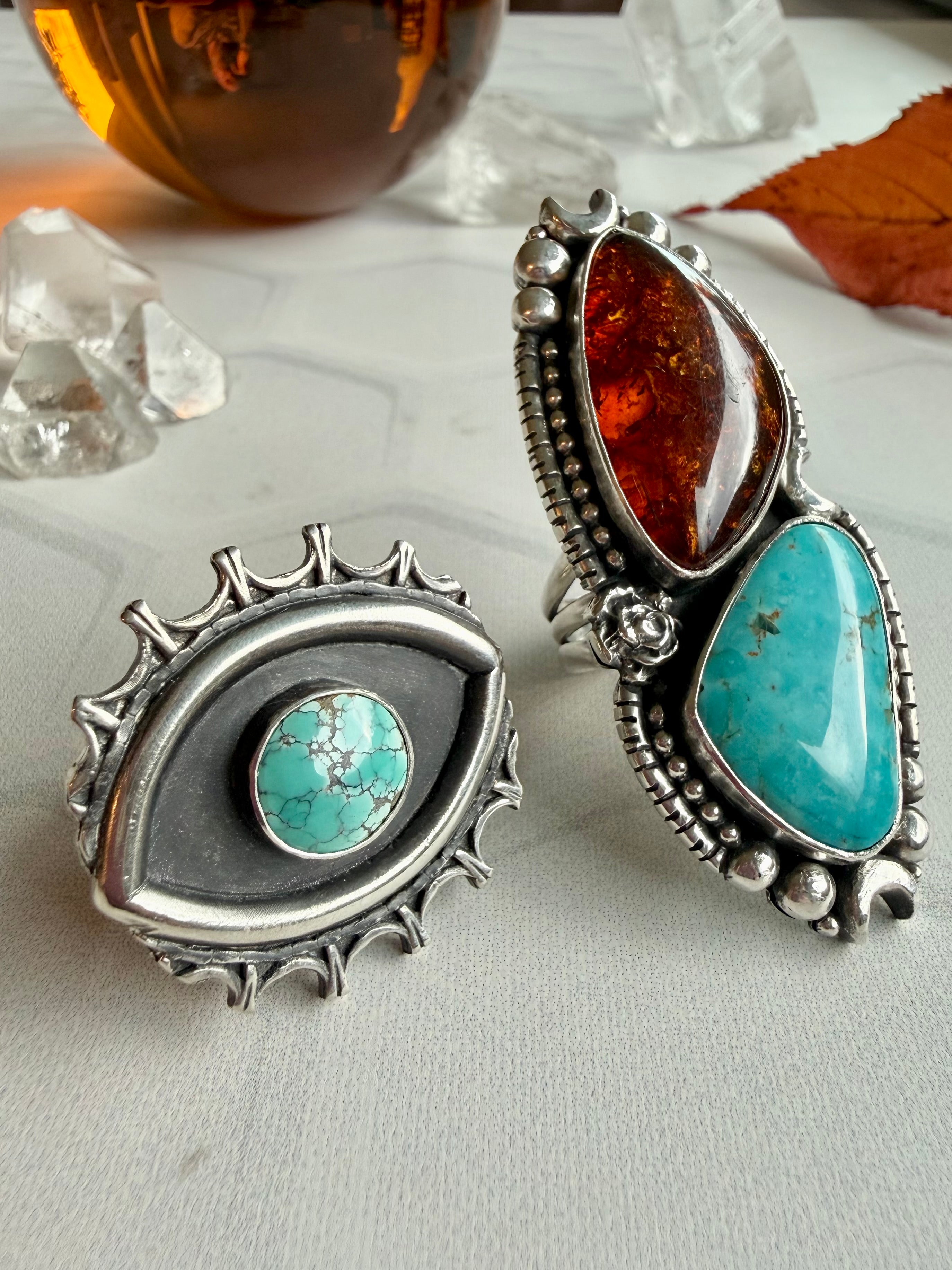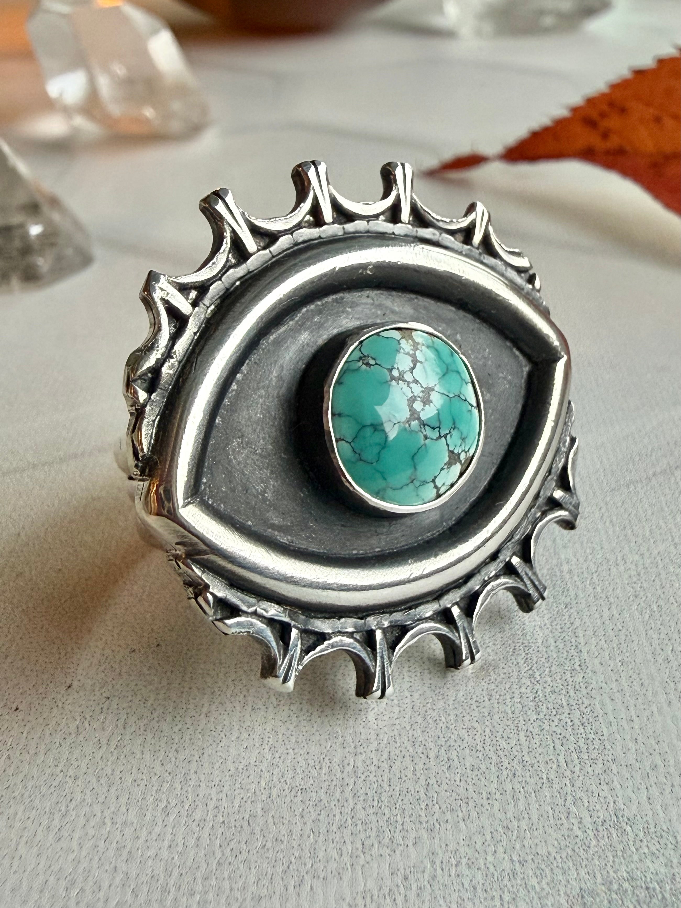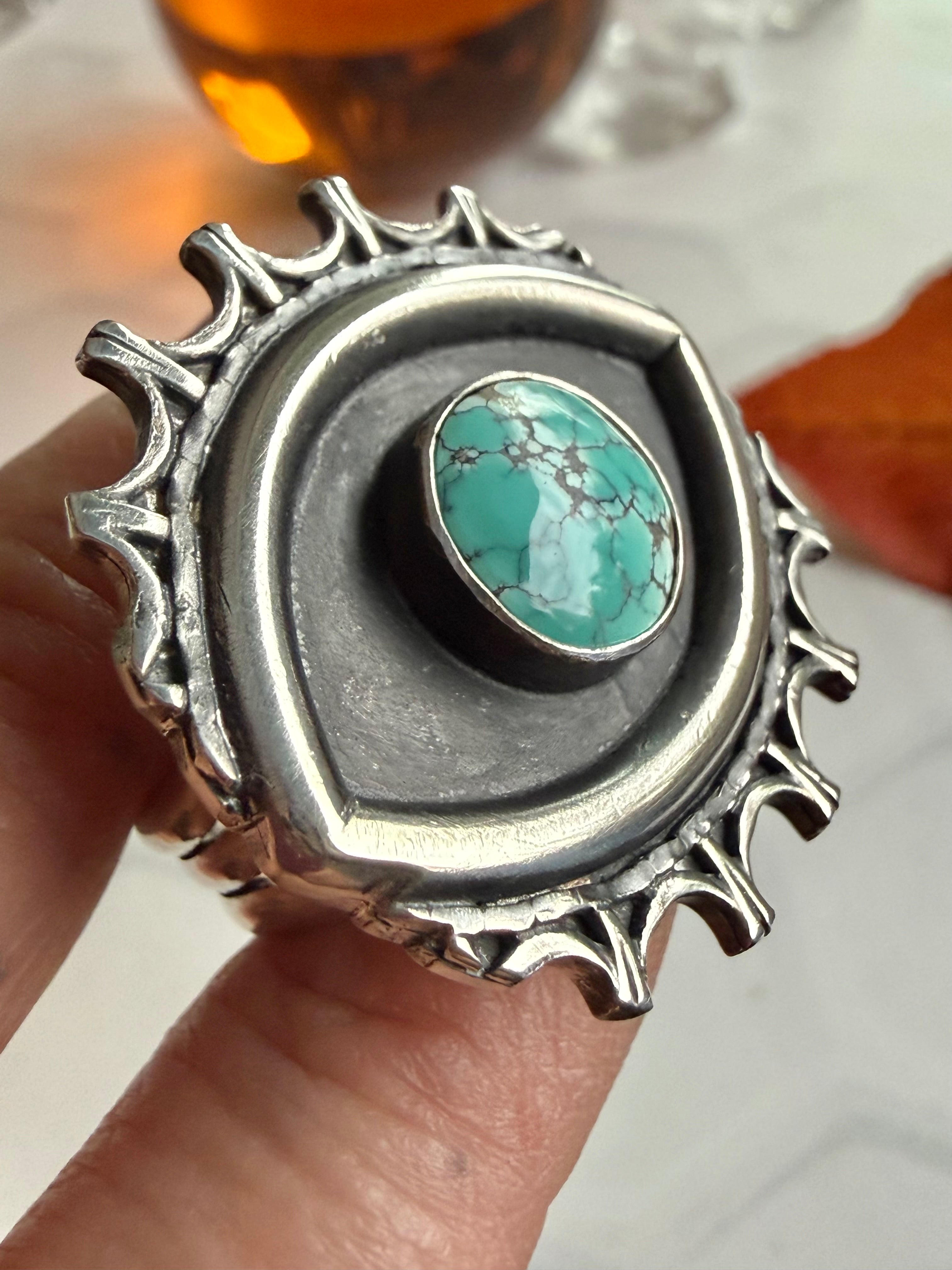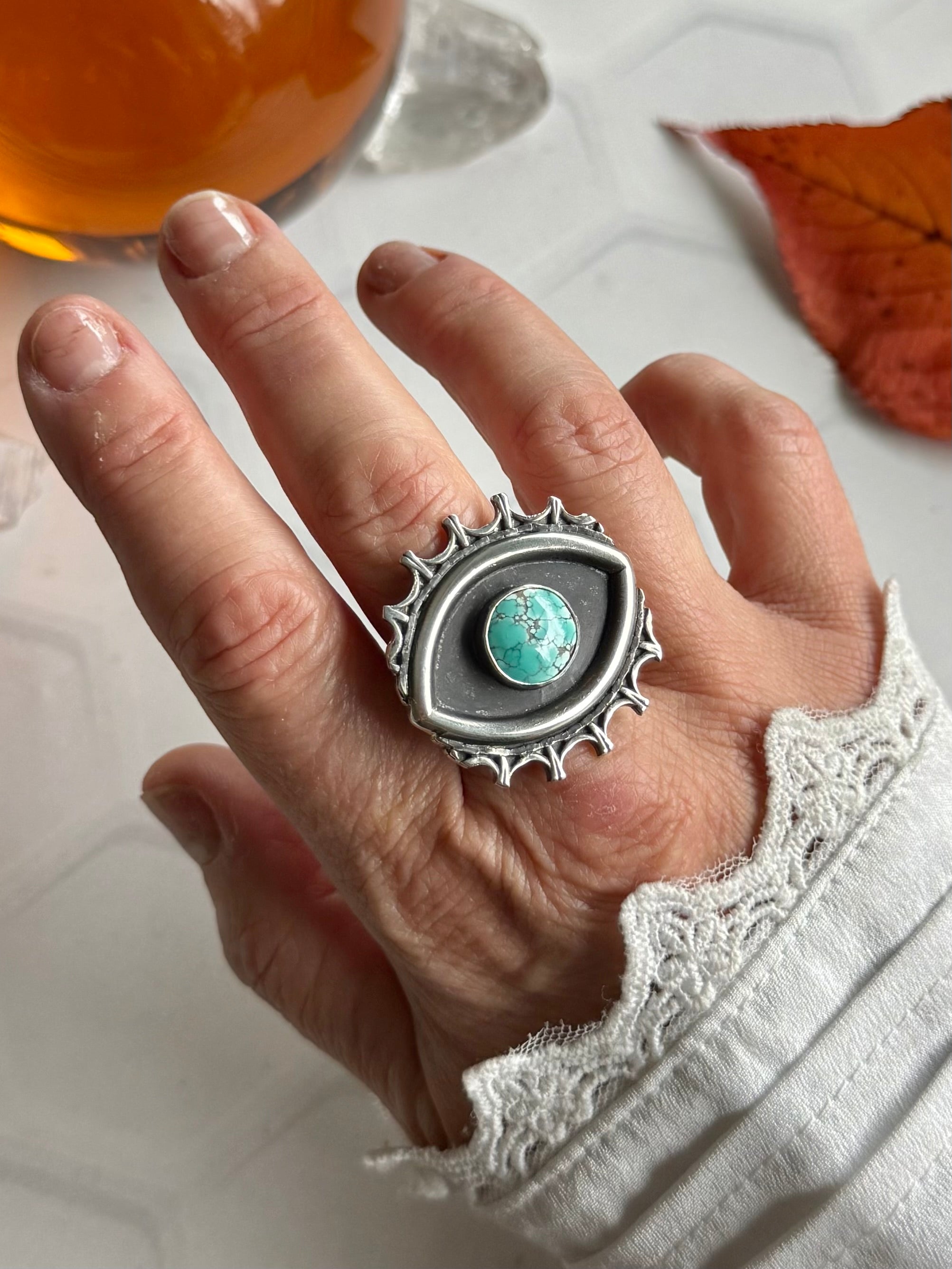 Turquoise Eye Ring. 10.5 Wide Width Band